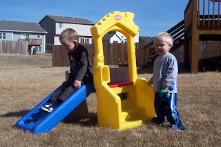 Last Wednesday, the weather was absolutely gorgeous here so the boys (Jeremiah, Joshua and their friend Zeke) and I headed to the backyard for some outdoor fun. The boys played on the slide, raced to and from the house and watched the airplanes flying overhead. The time went by way too fast! I want that weather back!